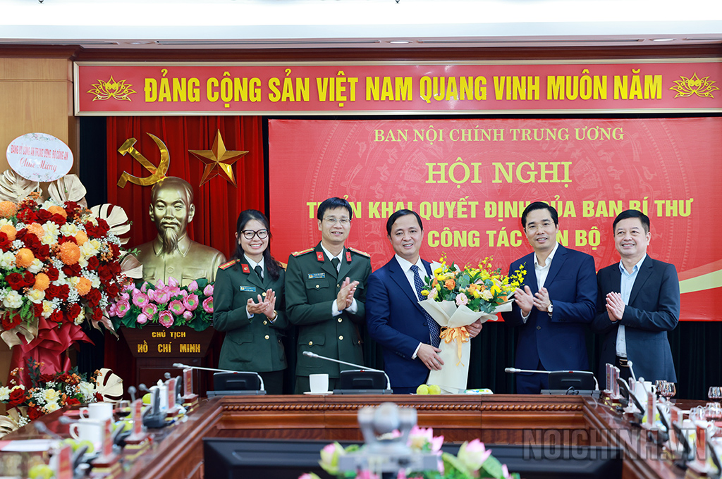 | Các đồng chí lãnh đạo Ban Nội chính Trung ương chúc mừng đồng chí Nguyễn Xuân Trường |